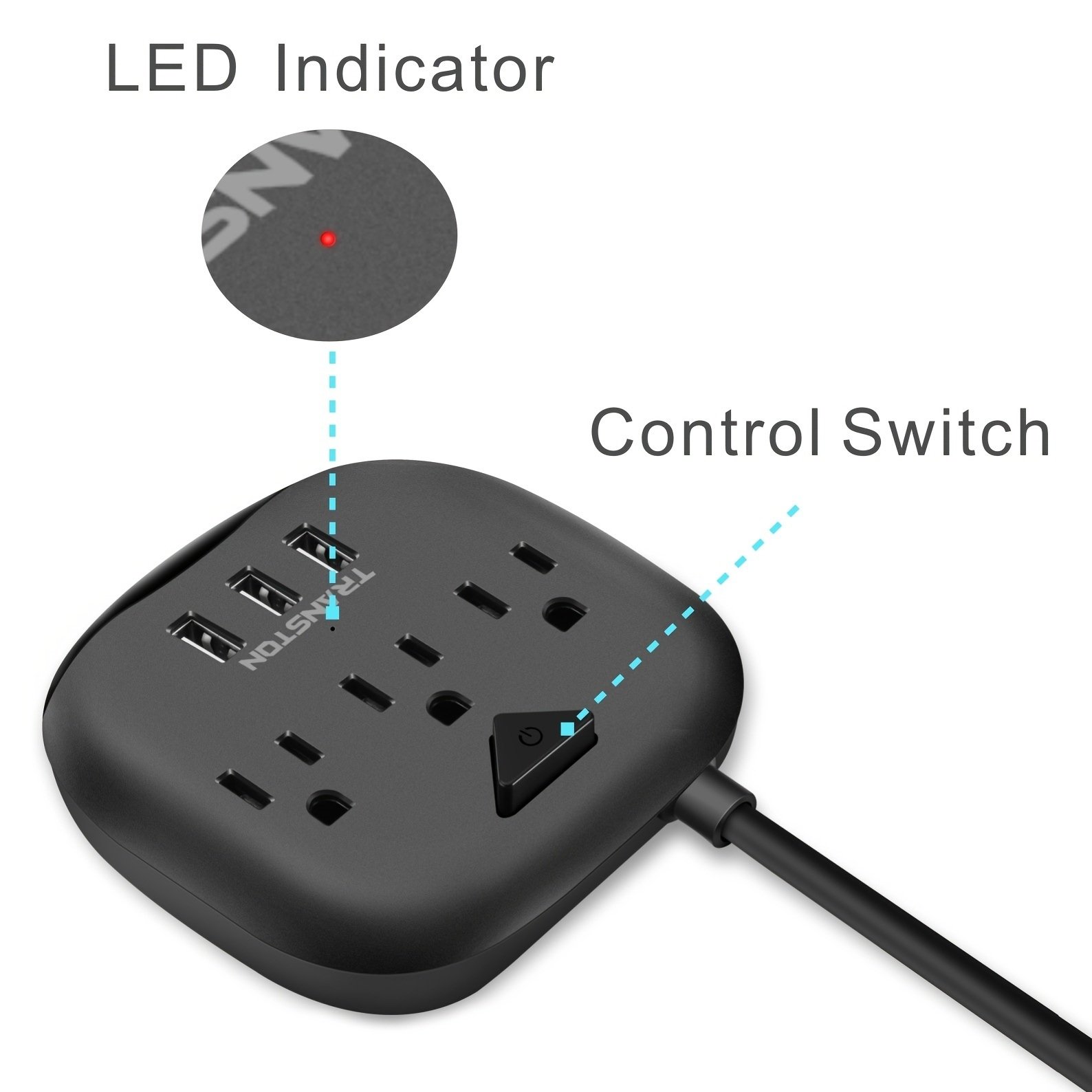 Home > Power Strip With 3 Outlets And 3 USB Ports With Switch Control; Desktop Charging Station With 5ft Extension Cord For Nightstand; Office And Travel